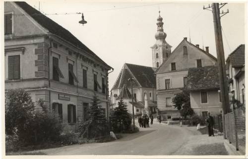 Ortszentrum mit Blick Richtung Kirche - ca. 1955